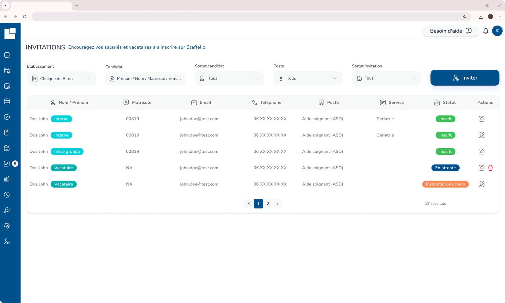 Invitez vos pools personnels salarié interne et vacataires à s’enregistrer sur la plateforme STAFFELIO :