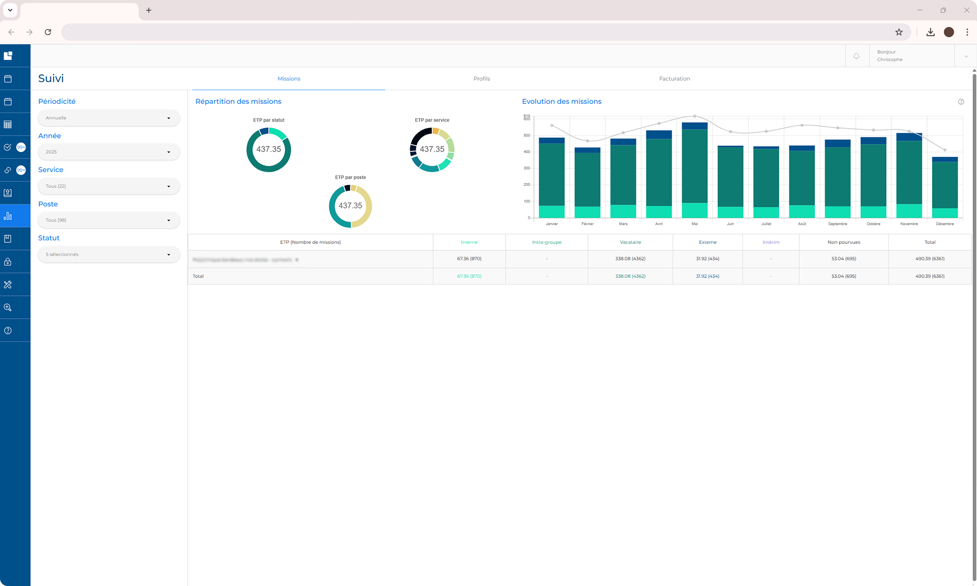 Suivi précis de la facturation : abonnement et remplacements externes STAFFELIO.